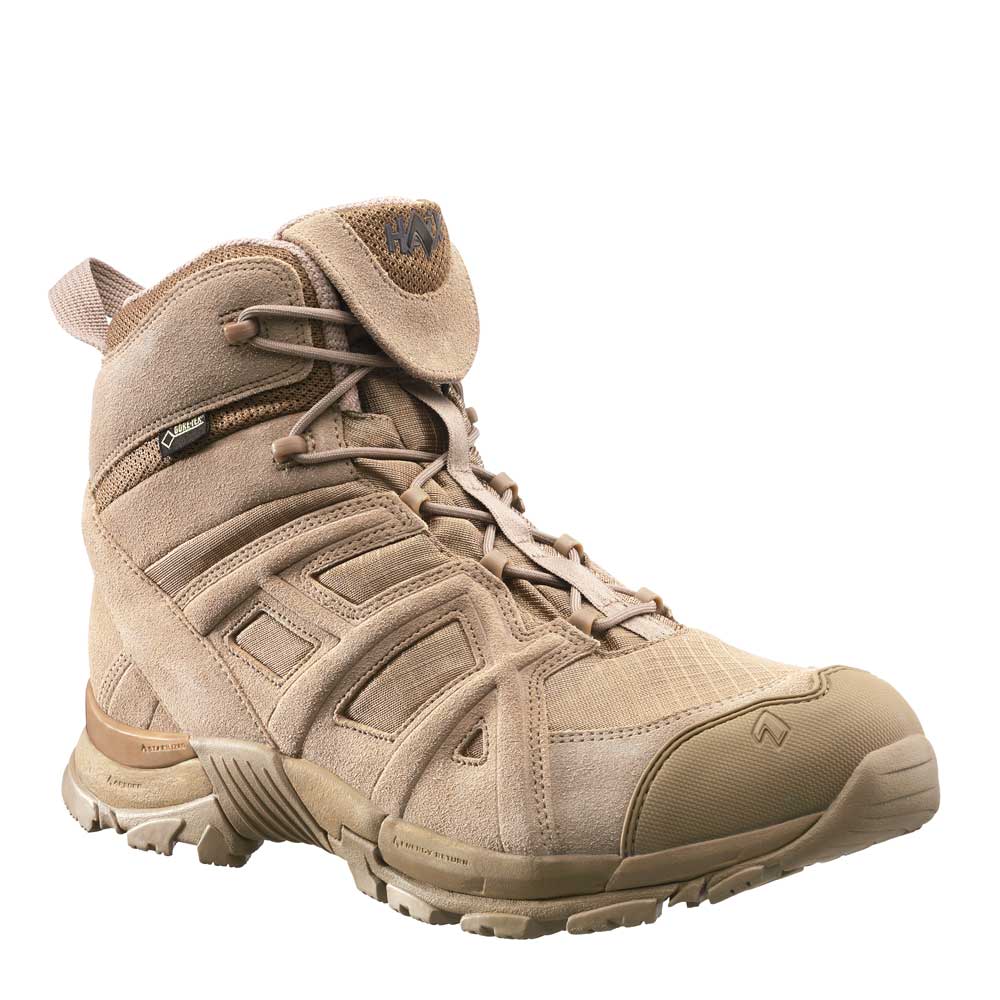 Ich habe mir die halbhohen Stiefel als Ergänzung zu meinen BW Haix Gebirgsjägerstiefeln gekauft. Mid Desert als Farbe ist ok und die Stiefel kommen nicht ganz so "martialisch" rüber. Die Größe EU43 (UK9) entspricht der BW (Mondopoint) Größe 275 und die Schuhe passen daher wie erwartet auch super. Da drückt nix trotz breiter Füße und im Vergleich zu hohen Ganzlederstiefeln tragen sich die Schuhe auch federleicht. Gute Dämpfung! Was ich nicht optimal finde, ist das neue Schnellschnürsystem, deshalb auch nicht 5 Punkte.