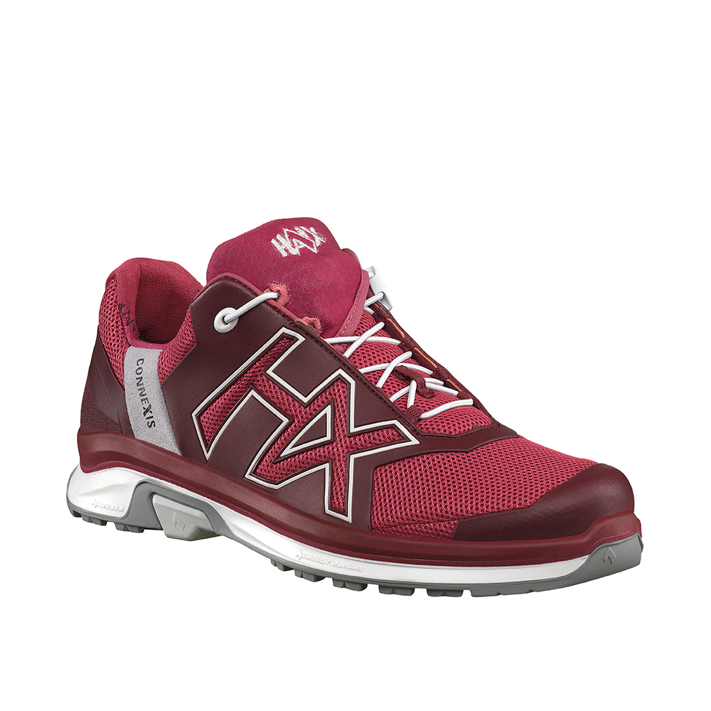 The women's model of the HAIX CONNEXIS Air Ws low/berry-silver is produced on a narrower last to accommodate slender feet. There are no visual or functional differences here.